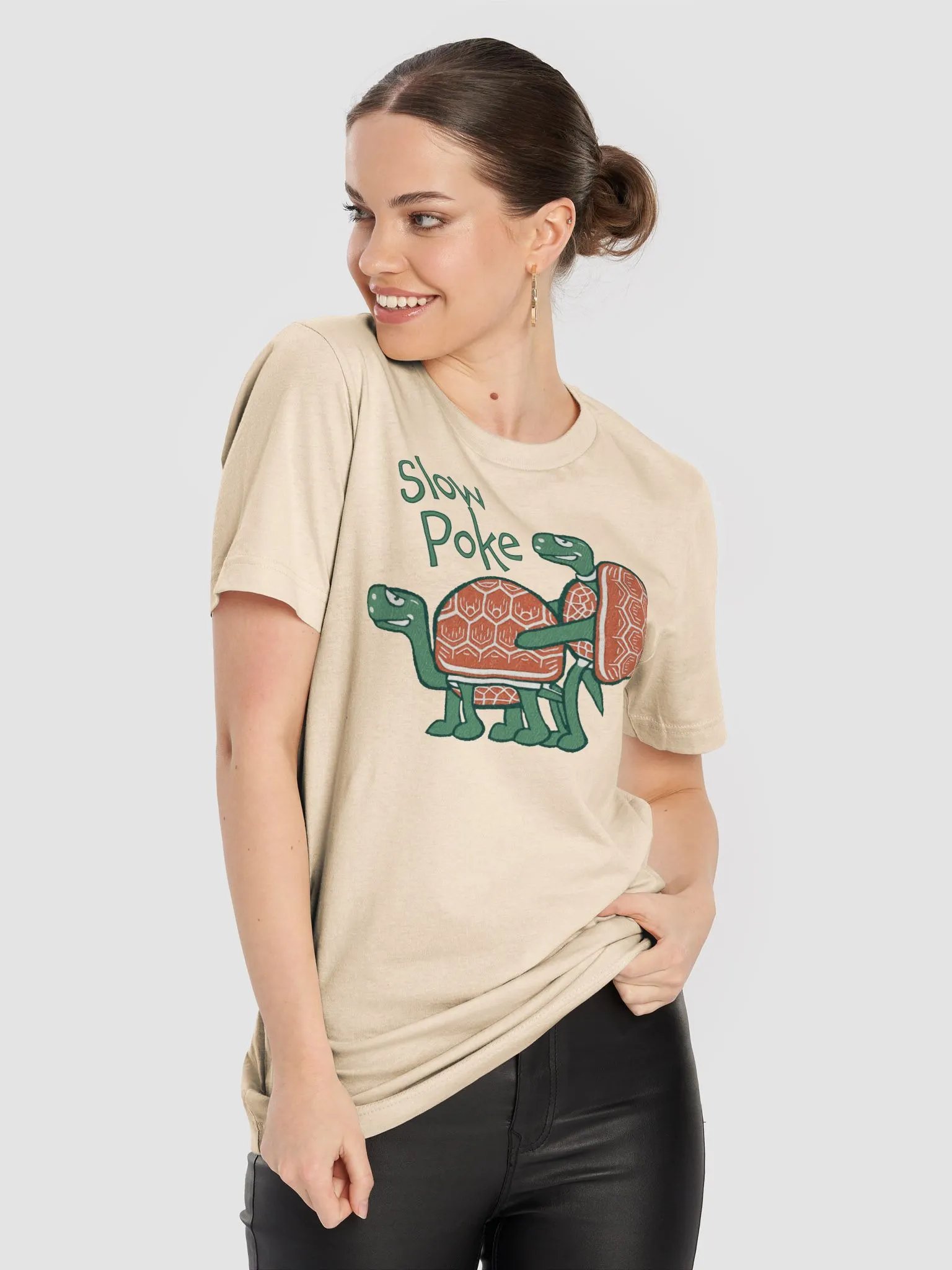 T-Shirt Description: "Slow Poke" Bella+Canvas Supersoft T-Shirt: Show off your laid-back attitude with our charming tee featuring two turtles savoring a relaxed moment together. Crafted from 100% Airlume combed and ring-spun cotton, this lightweight fabric (4.2 oz) offers unbeatable softness and breathability. Whether you're out for a stroll or chilling at home, let this delightful design bring a smile to your face and remind you to embrace life's slower moments.