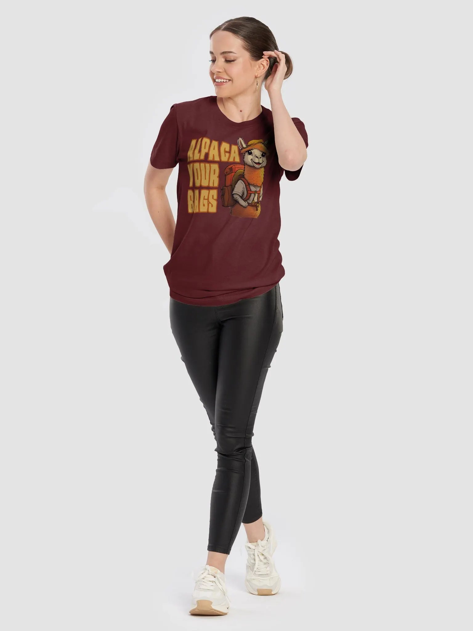 Pack your sense of humor and hit the road with our "Alpaca Your Bags" Bella+Canvas Supersoft T-Shirt. Crafted from 100% Airlume combed and ring-spun cotton, this tee is as soft and cozy as it gets. Its lightweight fabric (4.2 oz) and regular fit make it ideal for all your adventures, while the playful "Alpaca Your Bags" design adds a touch of whimsy to your wardrobe. Whether you're embarking on a grand journey or just running errands, our Alpaca Your Bags tee is sure to make you smile wherever you roam!