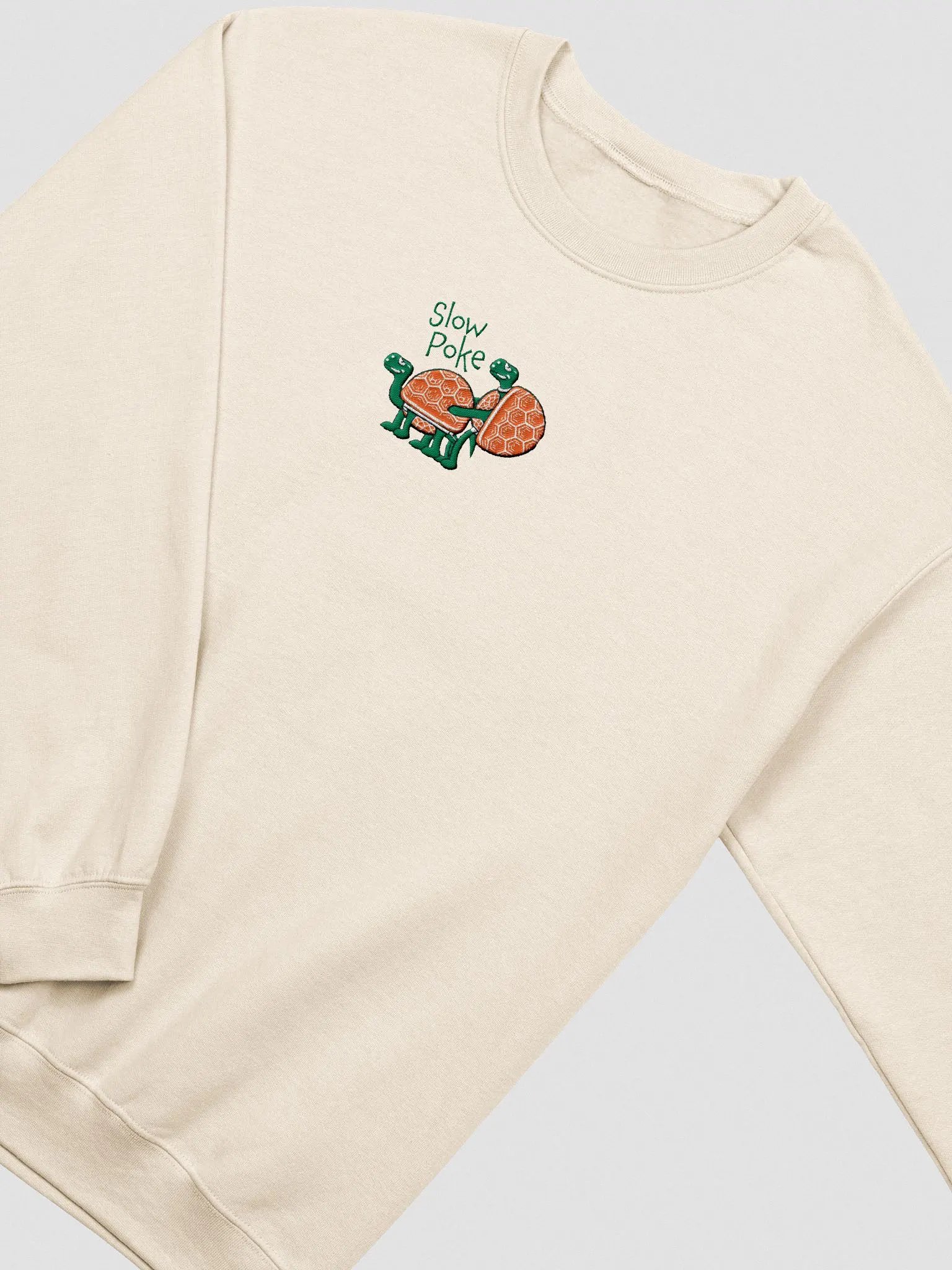 Embroidered Crewneck Description: Embrace the leisurely lifestyle with our exclusive "Slow Poke" crewneck sweatshirt. This cozy sweatshirt features an embroidered design of two turtles engaged in a tranquil moment, reminding you to take life at your own pace. Crafted from a blend of 50% cotton and 50% polyester, it offers both comfort and durability. Available exclusively in the sandy hue, this sweatshirt adds a touch of serenity to your wardrobe.